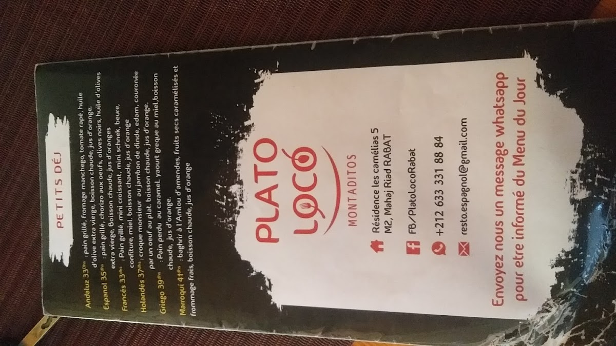 If you're in the mood for a sandwich, Plato Loco’s Sandwichs section won’t disappoint, with options like the hearty Sandwich Viande Hachée (minced meat), the unique Sandwich Hollandais (Dutch-style), and the satisfying Sandwich Tortilla. Seafood lovers can opt for the Sandwich Calamar (calamari) or the Sandwich Marisco (seafood).