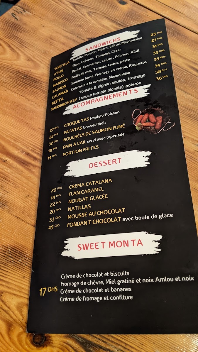 For those who enjoy light bites, the Accompagnement section offers a variety of tasty options such as the savory Croquetas Poisson (fish croquettes), the flavorful Croquetas Poulet (chicken croquettes), and the ever-popular Patatas Bravas with its deliciously spicy kick. If you're in the mood for something more creamy, the Patatas Aioli provides a smooth and garlicky accompaniment.